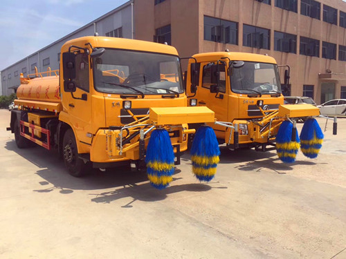 此次服務(wù)安徽高速公路的兩臺東風(fēng)天錦灑水車,采用工程黃涂裝,用于高速公路的路面重新,以及高速護(hù)欄的清洗使用,同時(shí)我公司生產(chǎn)的東風(fēng)天錦洗掃車也可用于高速路面清理的作用。