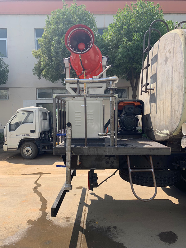 14噸東風(fēng)D9不銹鋼霧炮灑水車(chē)整車(chē)裝配完成,等待質(zhì)檢,該車(chē)采用東風(fēng)多利卡D9寬體駕駛室(2315mm豪華內(nèi)飾),排半白色帶液壓前翻,發(fā)動(dòng)機(jī)搭配ISB180(180馬力國(guó)五康明斯柴油發(fā)動(dòng)機(jī)六缸動(dòng)力,更經(jīng)濟(jì)環(huán)保),法士特八檔變速箱(8JS85),德納10噸級(jí)別后橋,10.00R20鋼絲胎(帶備胎),軸距4500mm;上裝:304材質(zhì)不銹鋼,厚度4mm,主管道為89mm,杭州威龍60/90不銹鋼水泵,所有直通球閥均為大通徑不銹鋼球閥,進(jìn)水口均加裝黃銅過(guò)濾器,后工作平臺(tái)安裝CLW-30型風(fēng)送式噴霧機(jī)(7KW柴油動(dòng)力),其余按照廠家標(biāo)配制作。