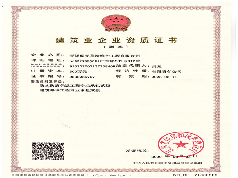 歡迎來(lái)到無(wú)錫鼎元幕墻維護(hù)工程有限公司!